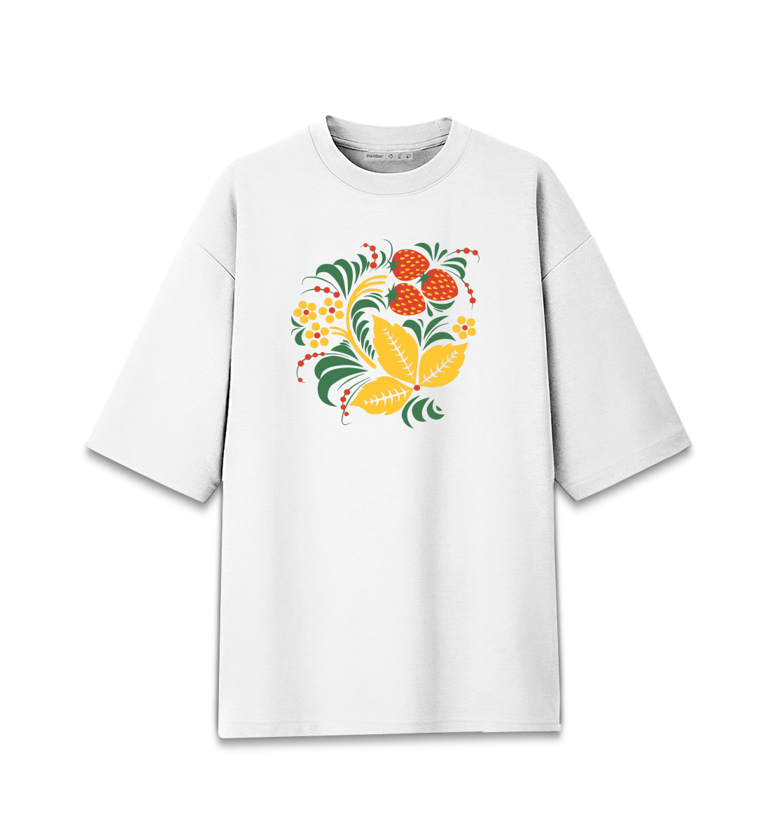 Мужская футболка оверсайз Хохлома роспись Клубника