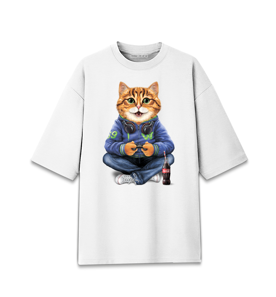 Мужская футболка оверсайз Кот геймер