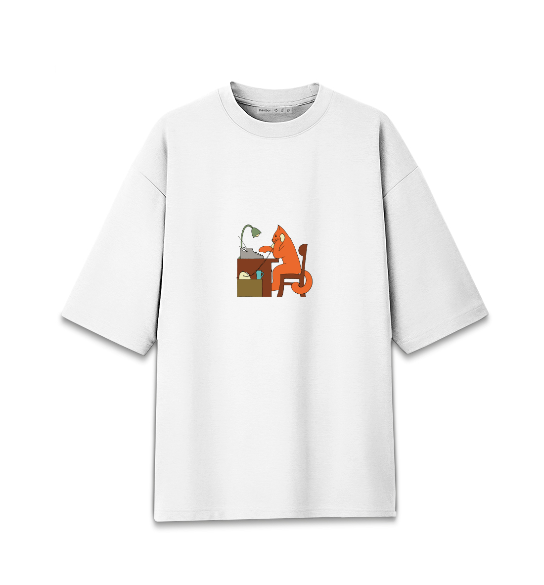 Мужская футболка оверсайз Кот с пишущей машинкой