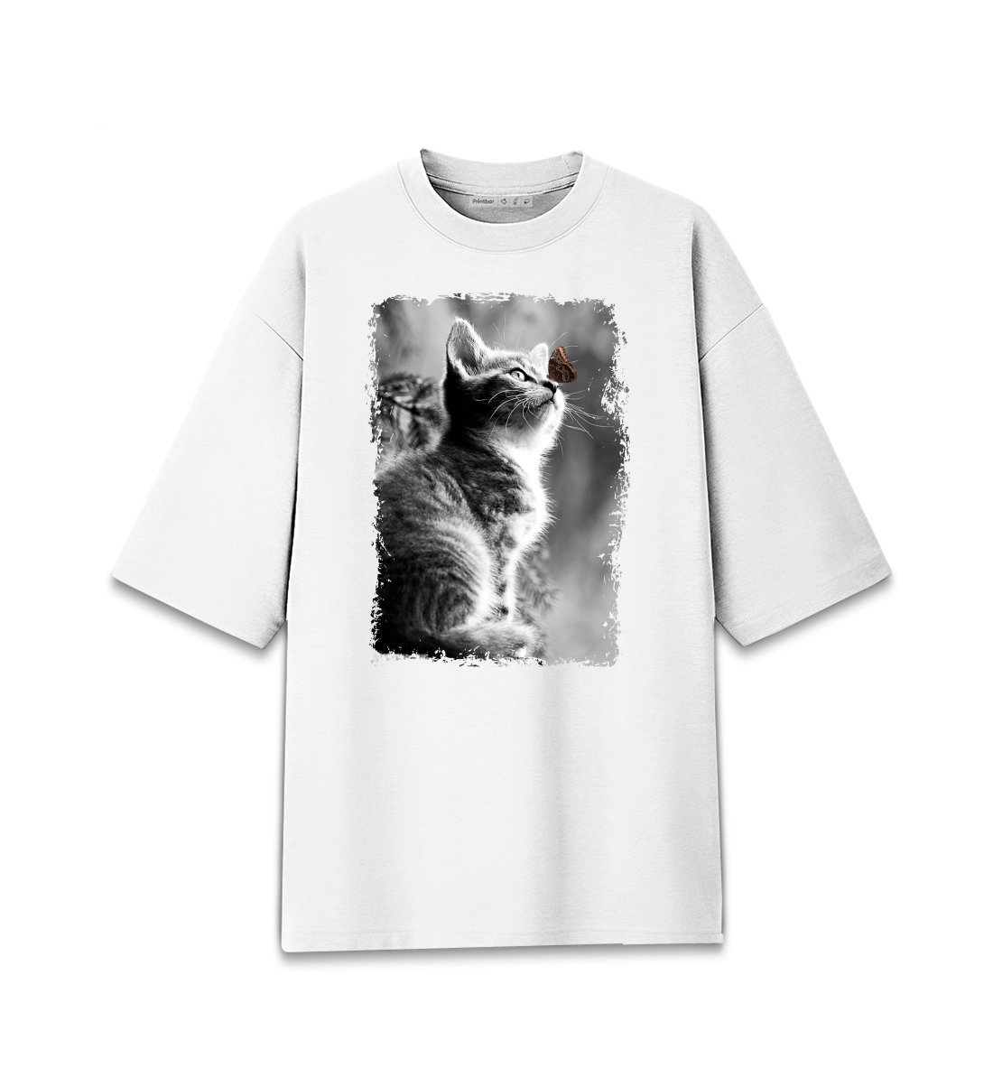 Мужская футболка оверсайз Котенок и бабочка