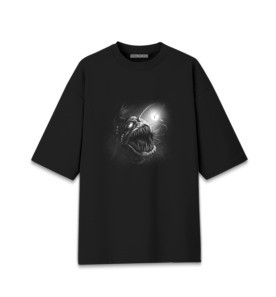 Мужская футболка оверсайз Морской чёрт - рисунок карандашом