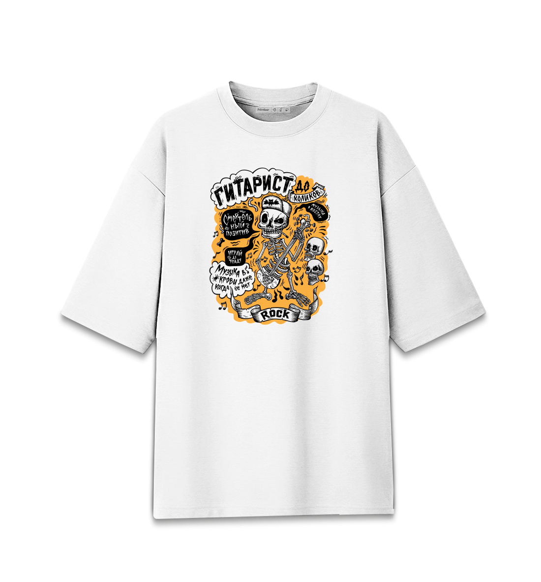 Мужская футболка оверсайз Скелет гитарист с надписями