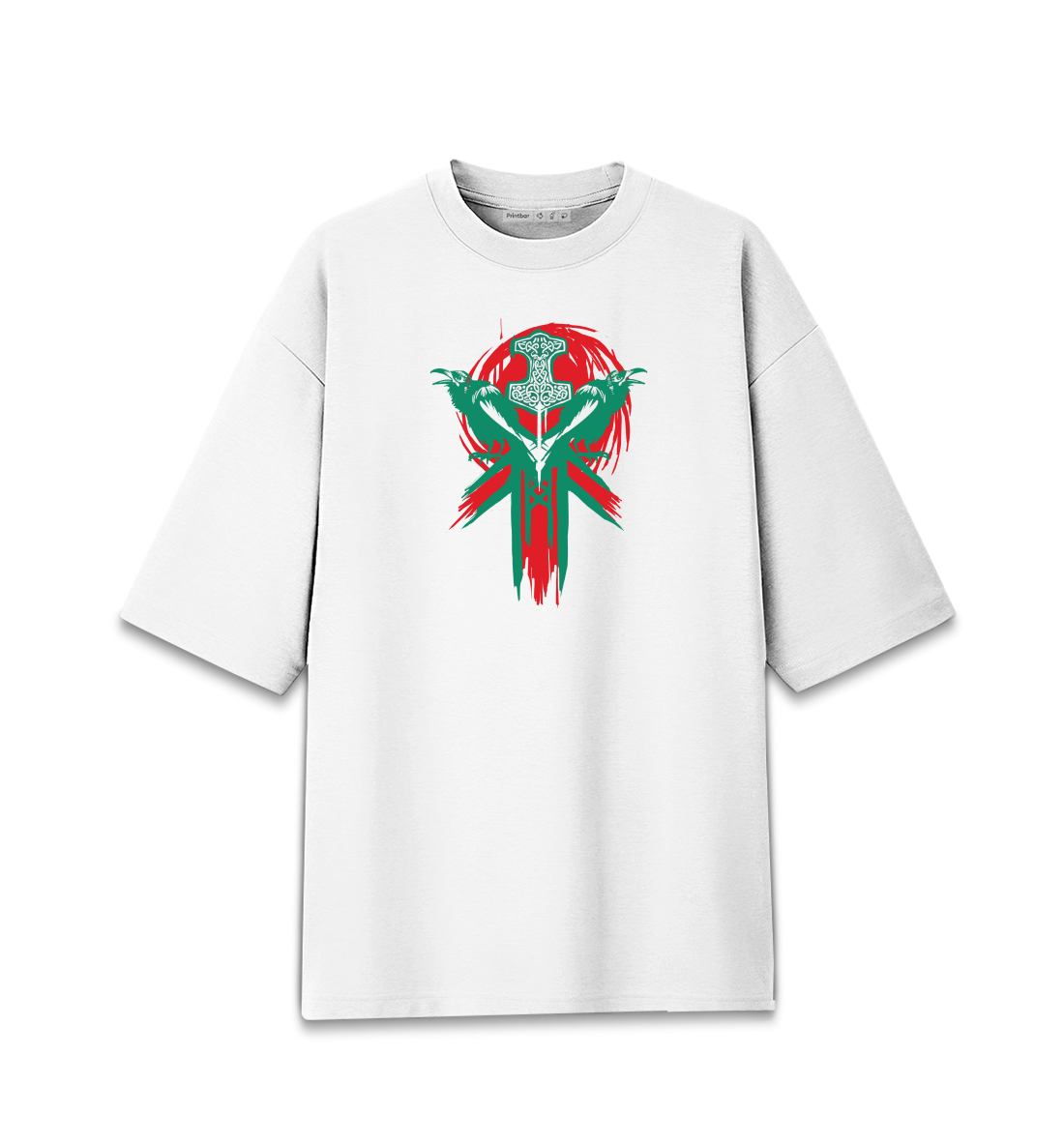 Мужская футболка оверсайз Вороны Одина и Мьёльнир