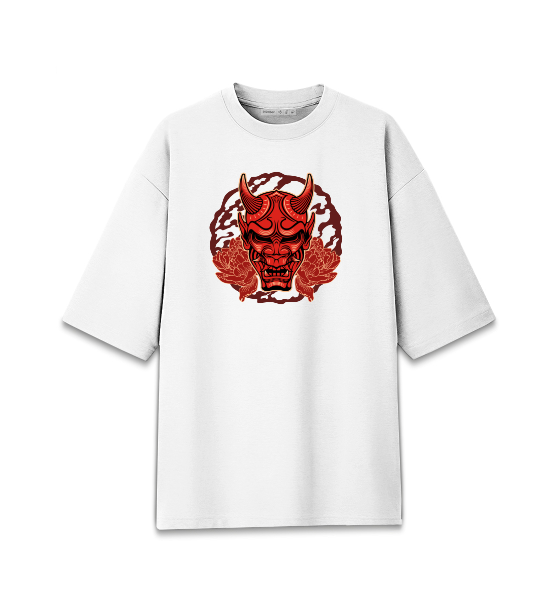 Мужская футболка оверсайз Японская маска Хання с пионами