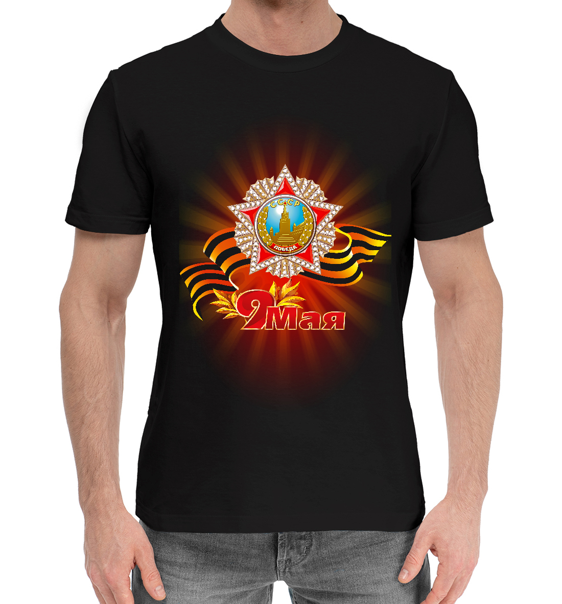Мужская хлопковая футболка с принтом «9 Мая»
