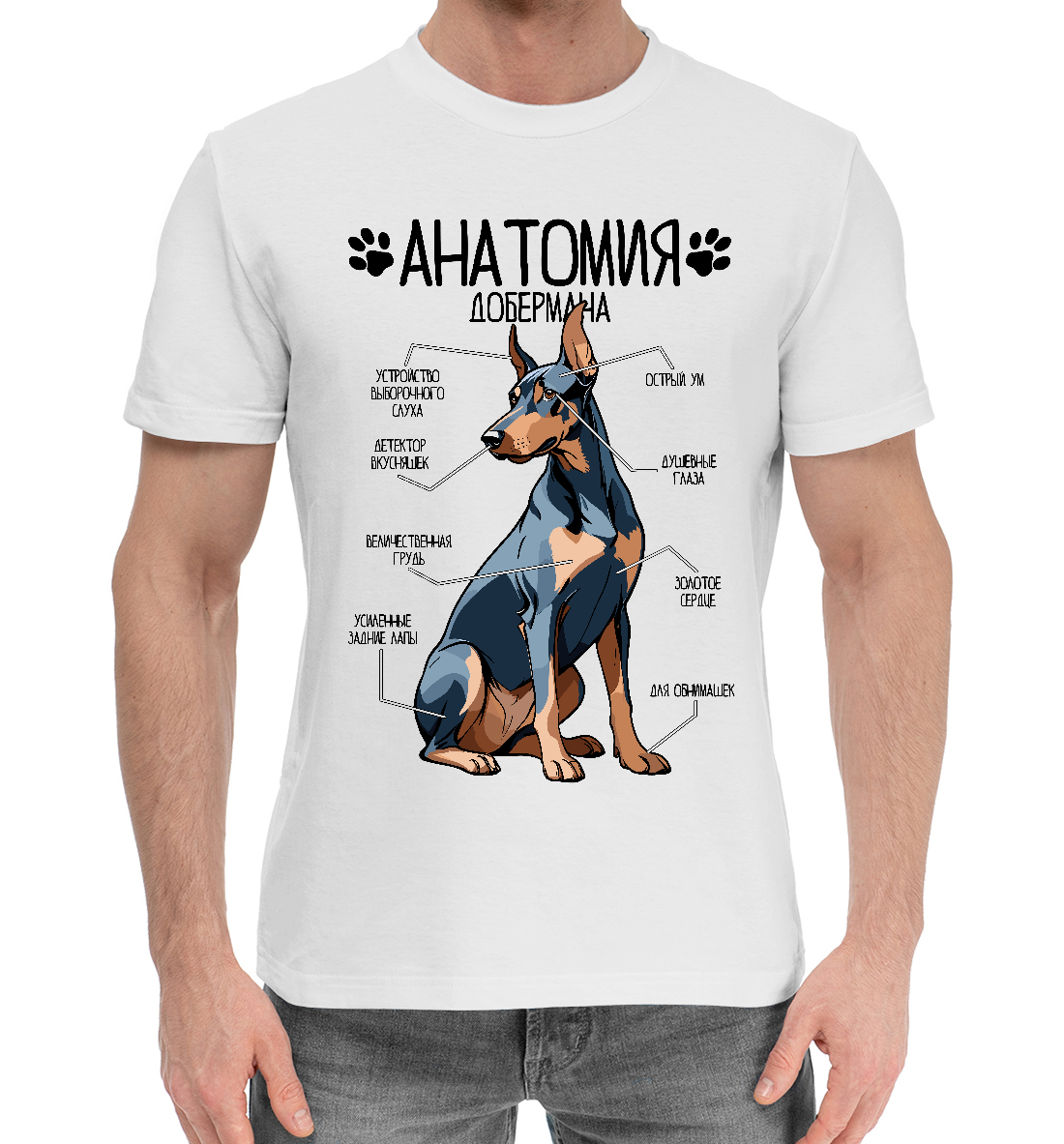 Мужская хлопковая футболка с принтом «Анатомия добермана»