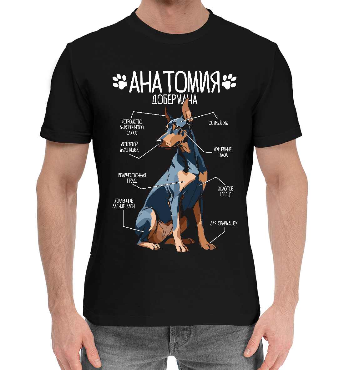Мужская хлопковая футболка с принтом «Анатомия добермана, черный»