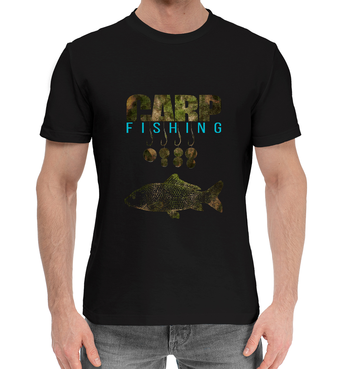 Мужская хлопковая футболка с принтом «Carp Fishing»