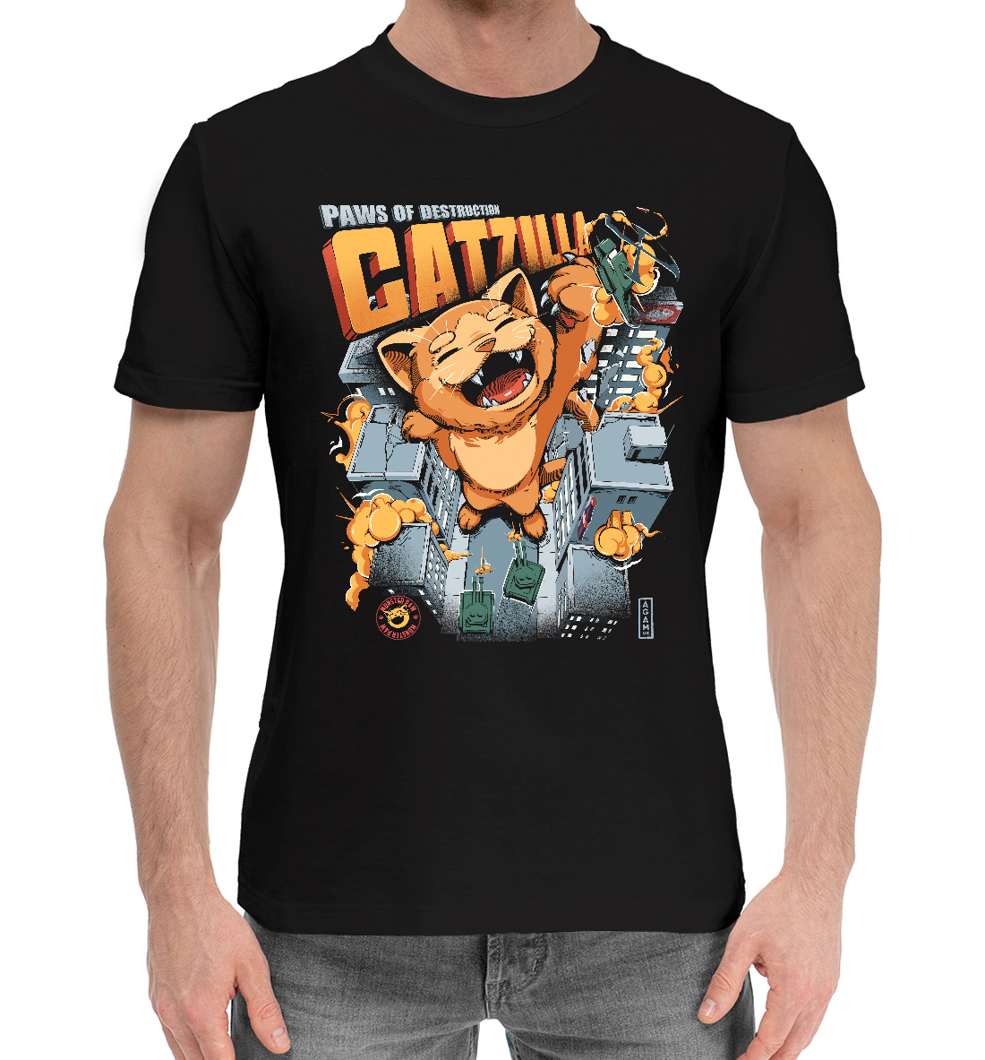 Мужская хлопковая футболка с принтом «Catzilla King Of Monster»