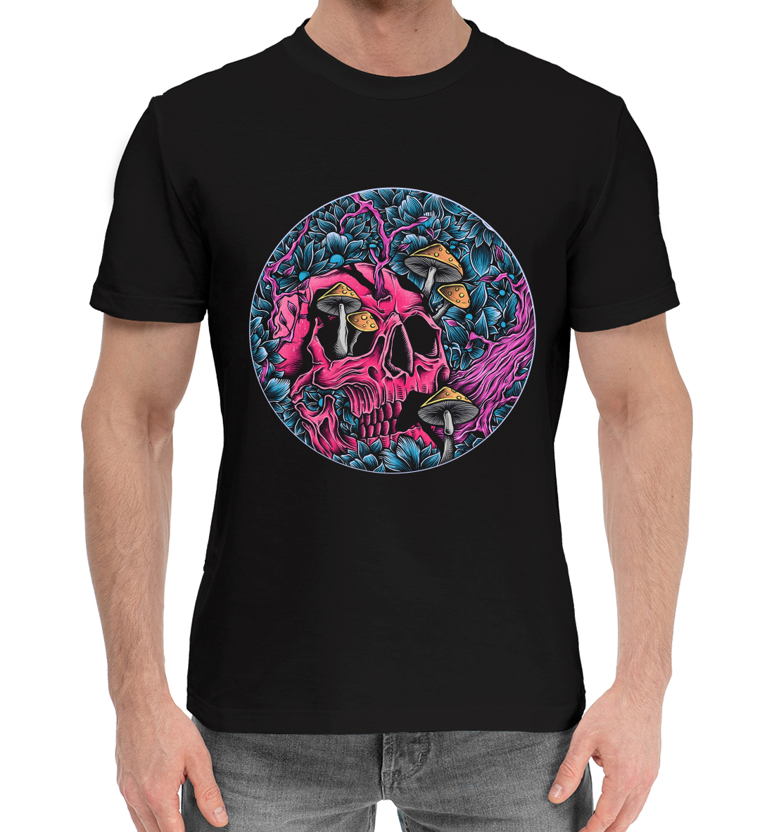 Мужская хлопковая футболка с принтом «Череп грибы»