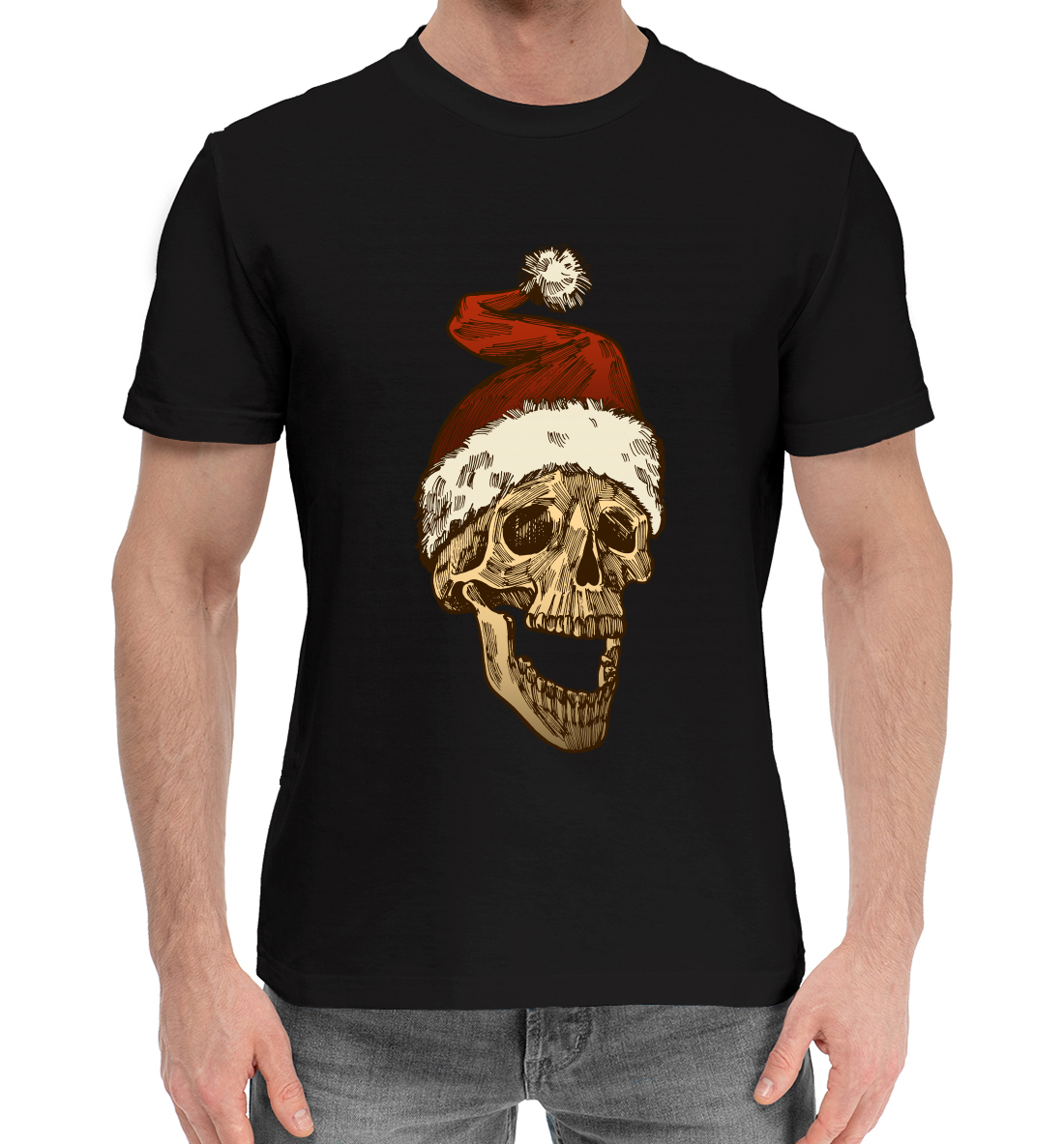 Мужская хлопковая футболка с принтом «Череп Санты»