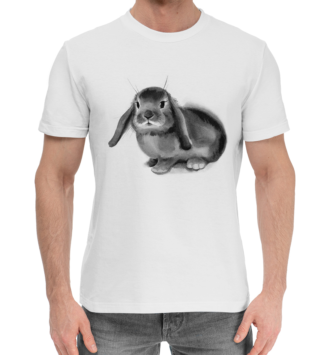 Мужская хлопковая футболка с принтом «Черный кролик Банни»