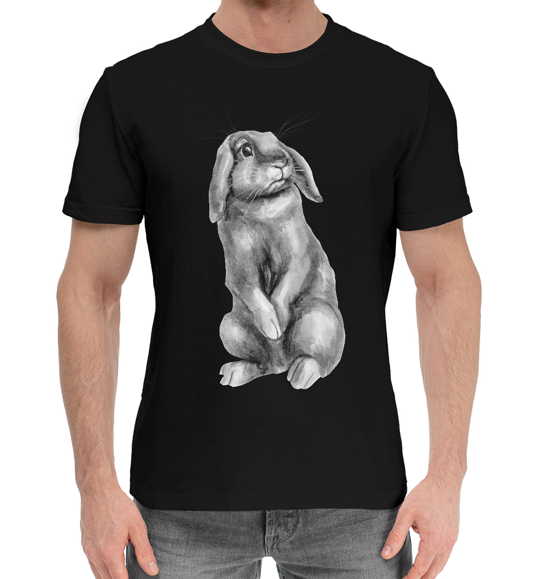 Мужская хлопковая футболка с принтом «Черный кролик чудной»