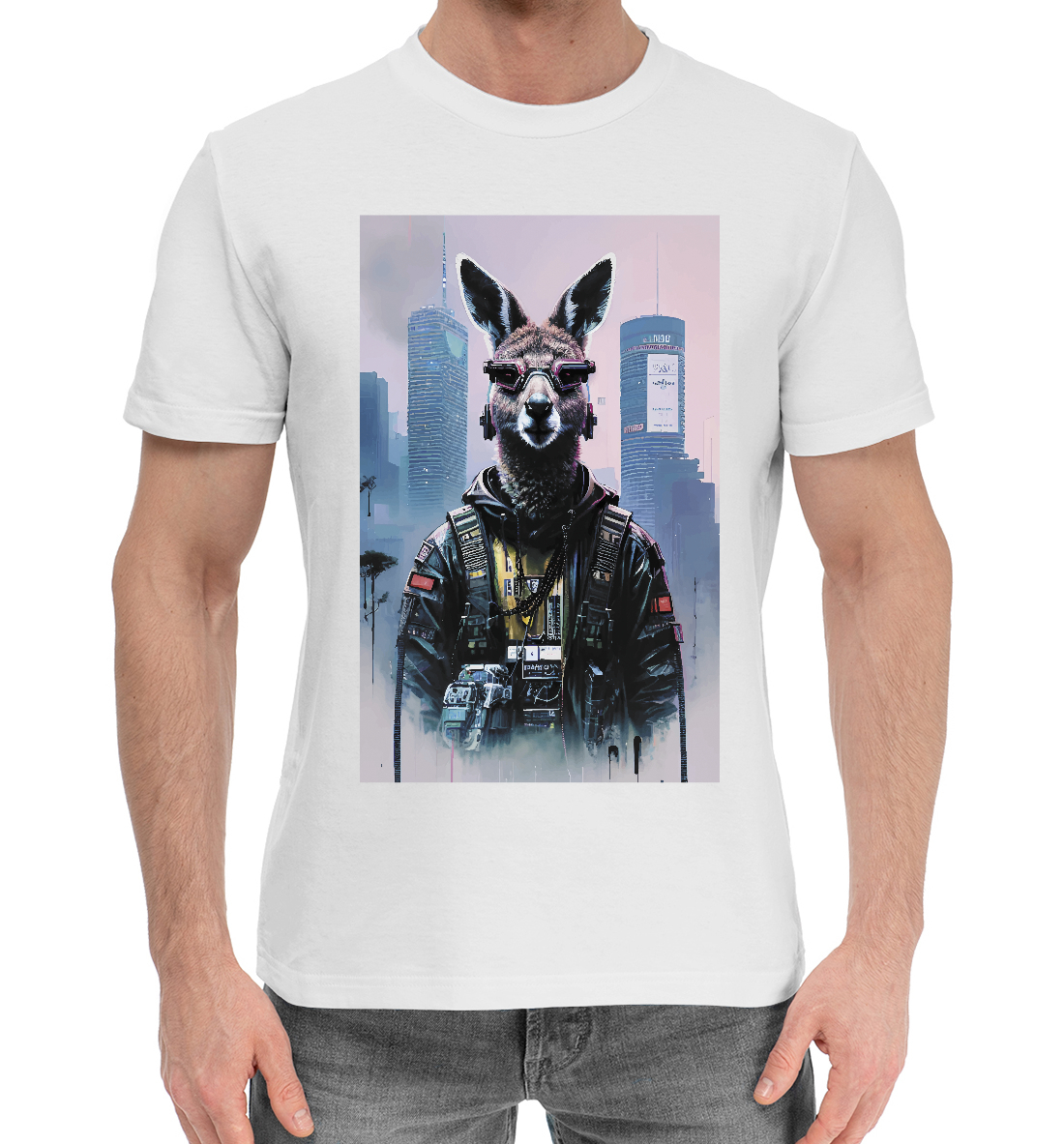 Мужская хлопковая футболка с принтом «Cool kangaroo - neural network»