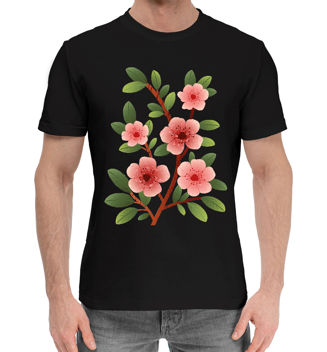 Мужская хлопковая футболка с принтом «Цветущая ветка с листьями»