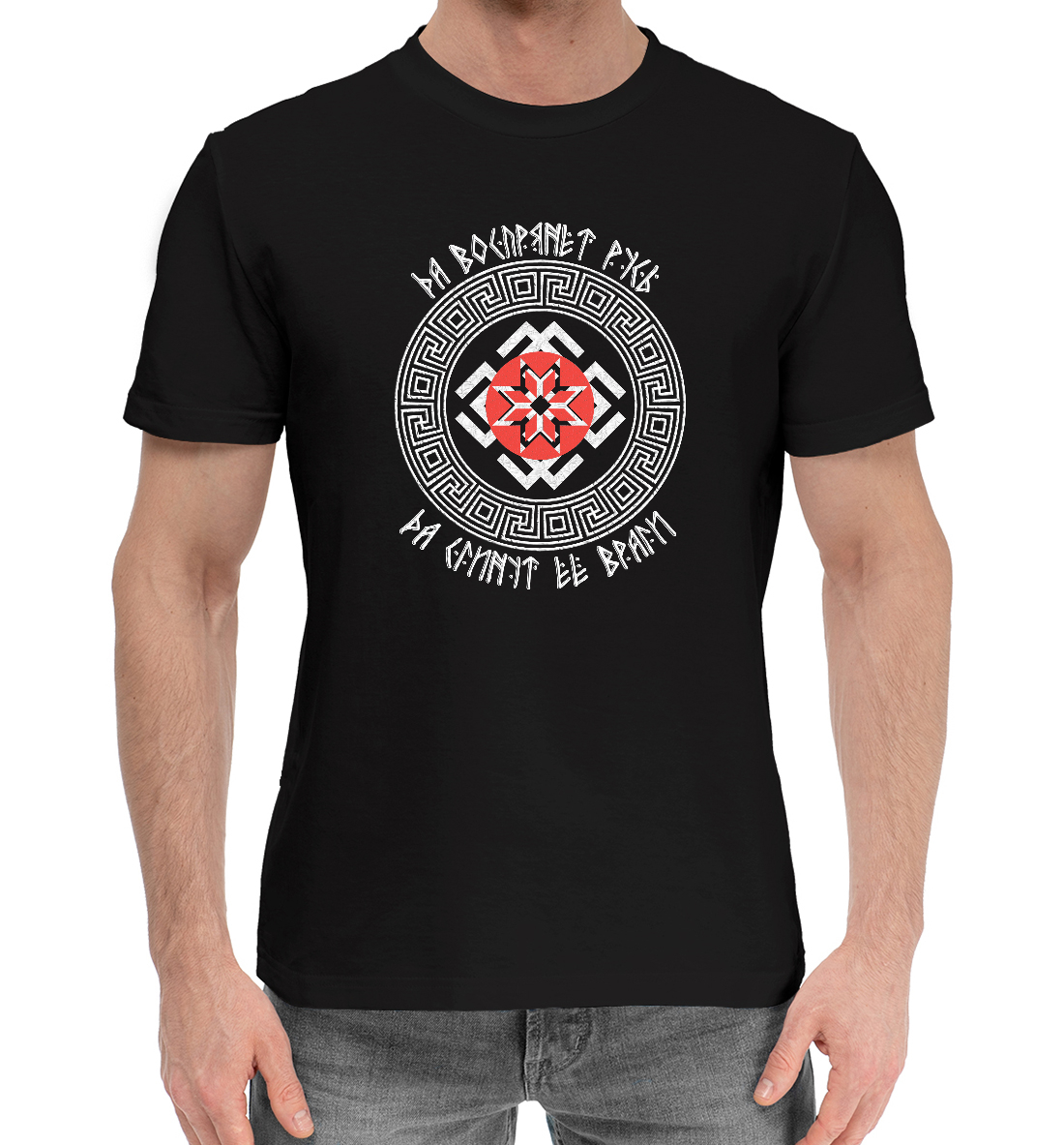 Мужская хлопковая футболка с принтом «Да воспрянет Русь!»