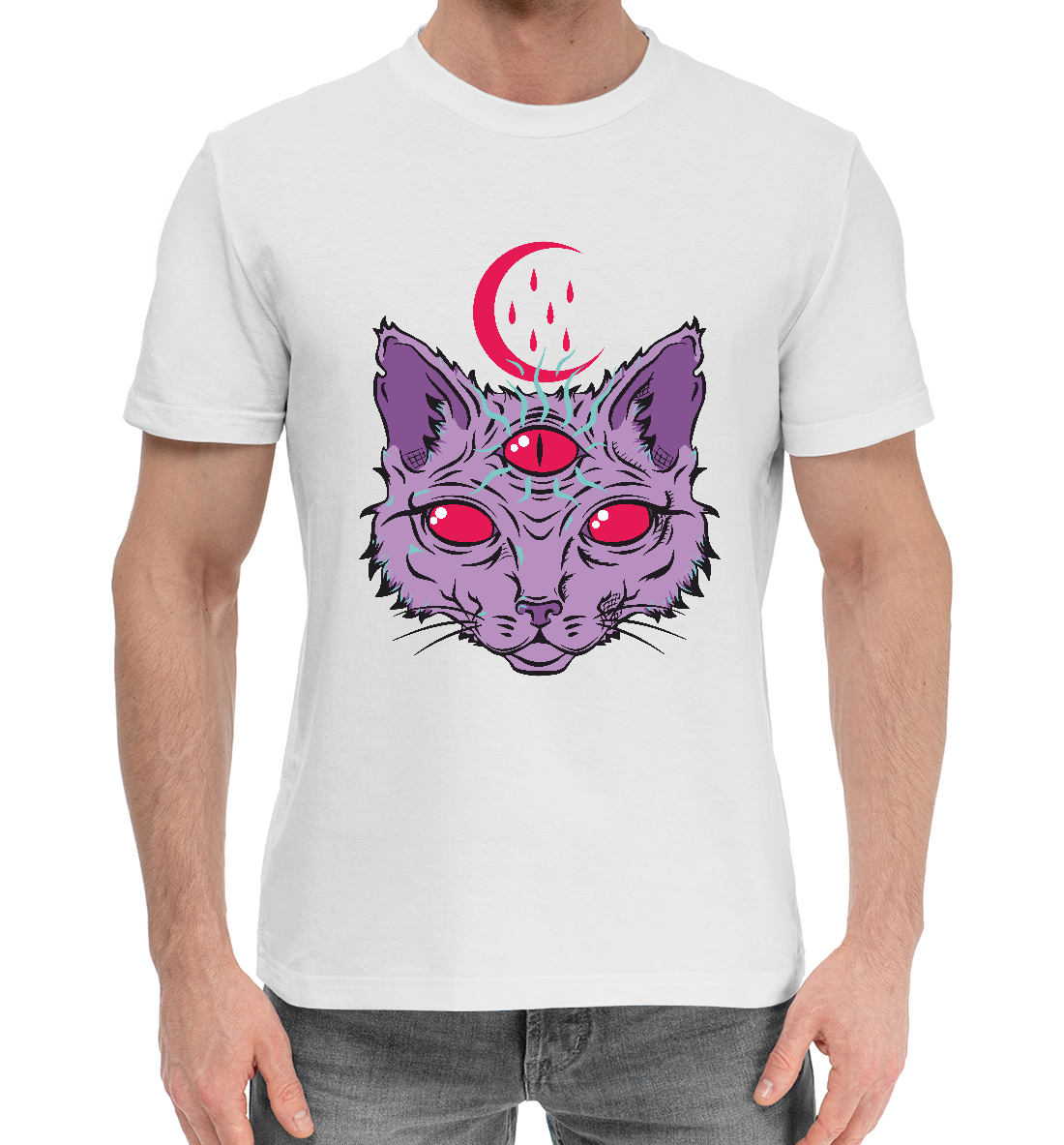 Мужская хлопковая футболка с принтом «Devil Cat»