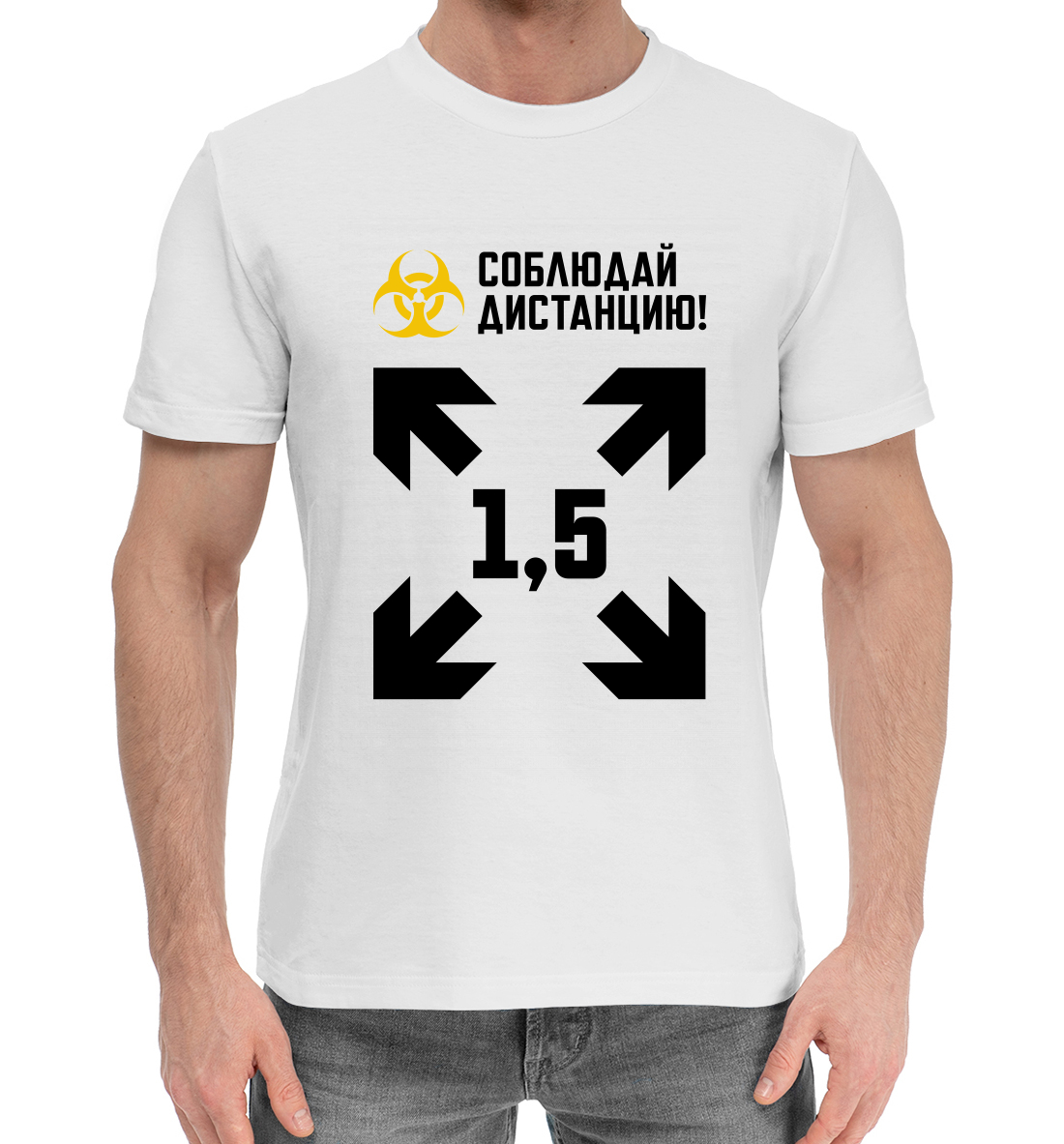 Мужская хлопковая футболка с принтом «Дистанция 1,5»