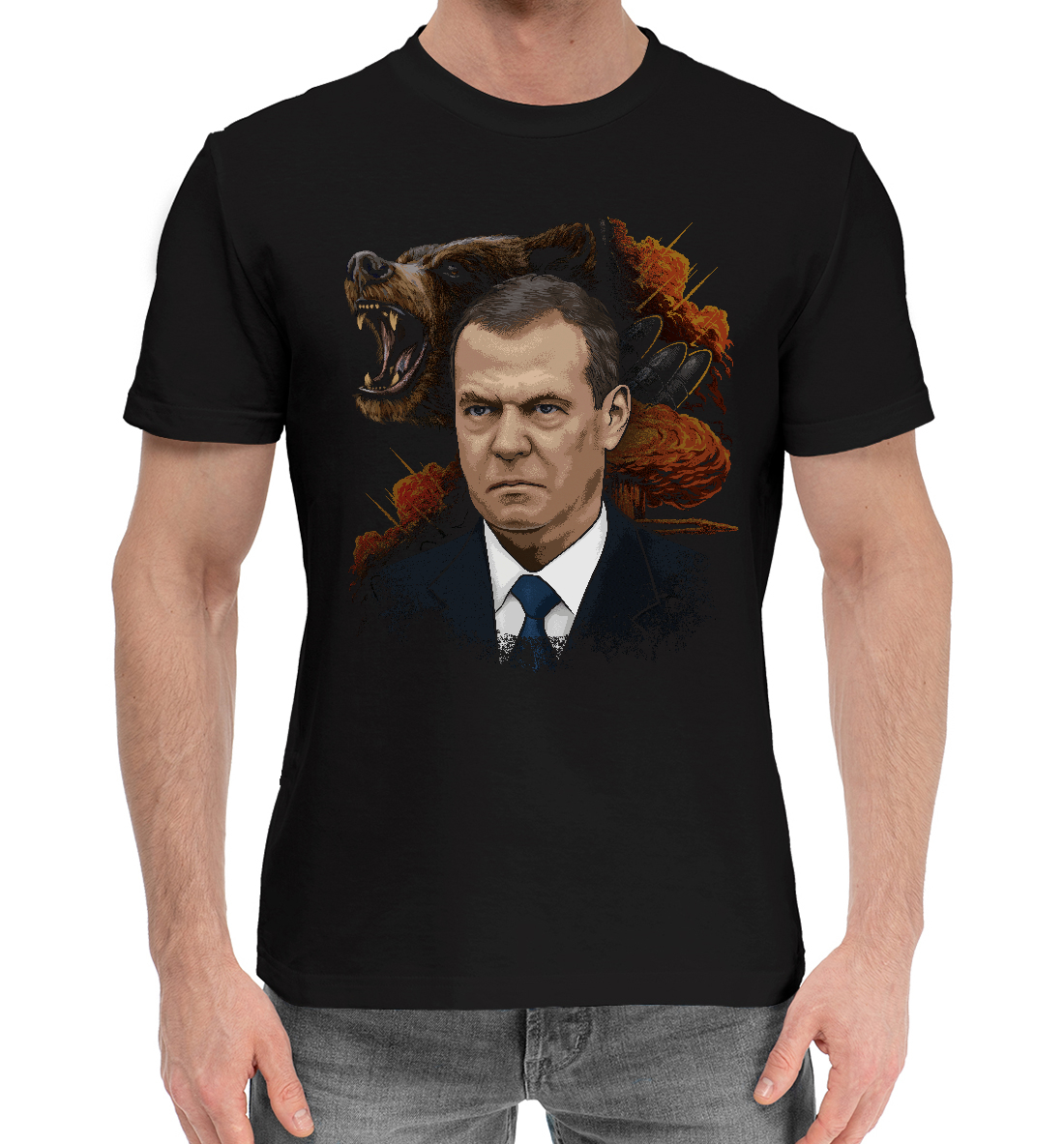 Мужская хлопковая футболка с принтом «Дмитрий Медведев с медведем»