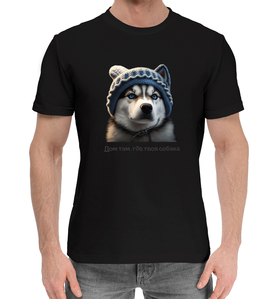 Мужская хлопковая футболка с принтом «Дом там, где твоя собака. ХАСКИ»