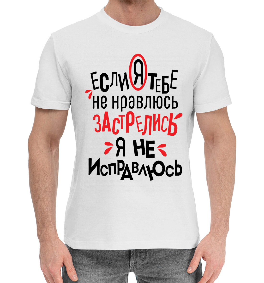 Мужская хлопковая футболка с принтом «Если я тебе не нравлюсь застрелись я не исправлюсь»