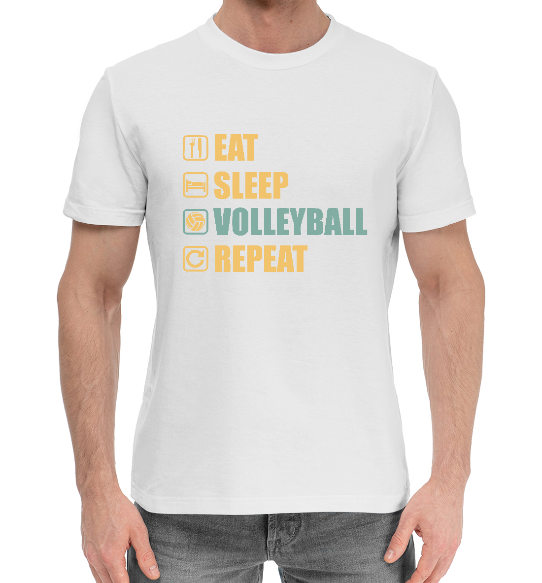 Мужская хлопковая футболка с принтом «Есть, спать, волейбол»