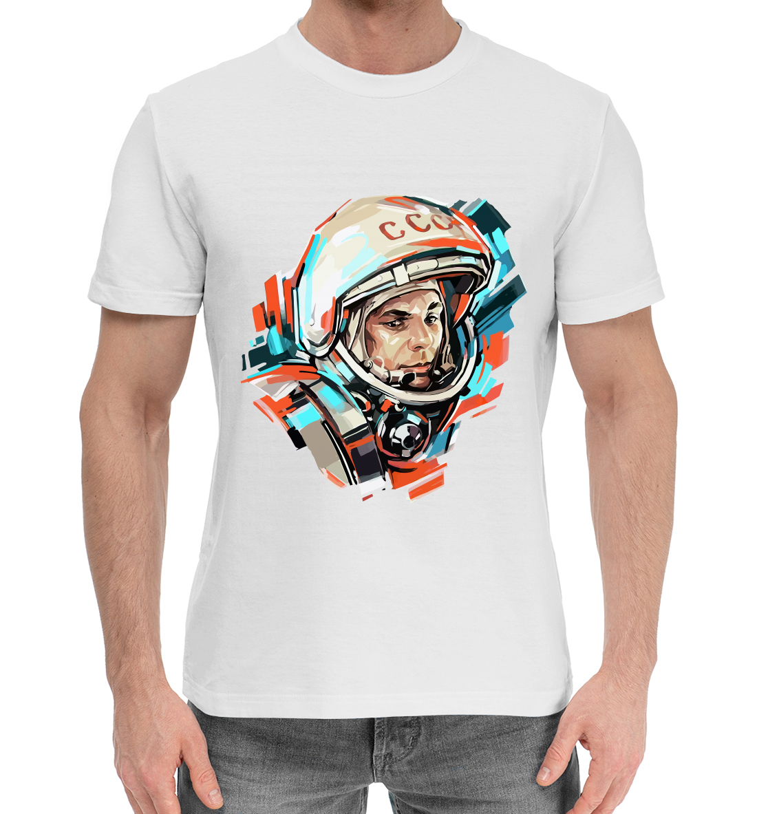 Мужская хлопковая футболка с принтом «Гагарин»