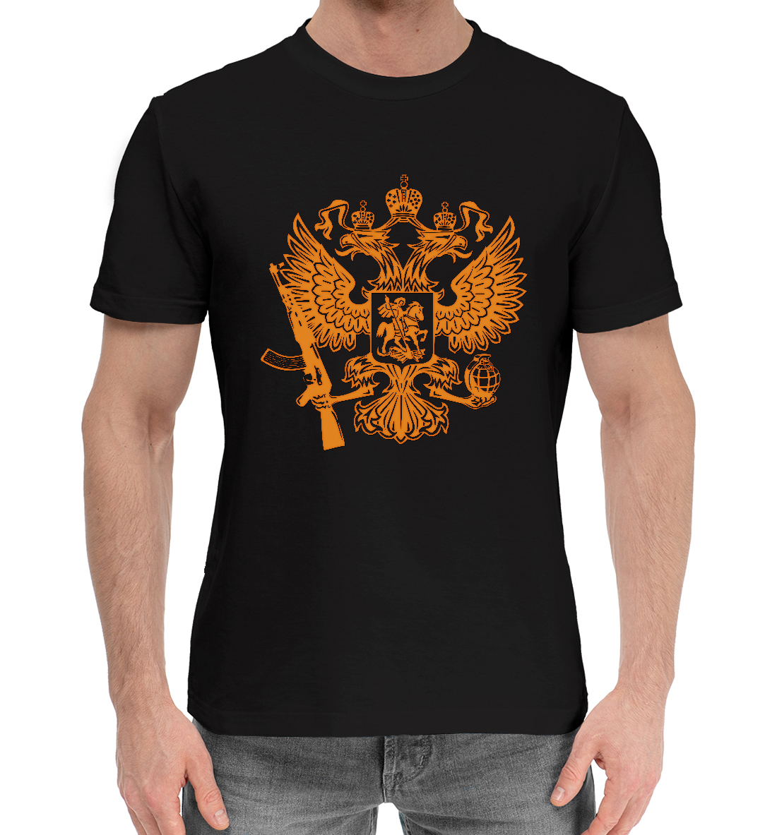 Мужская хлопковая футболка с принтом «Герб РФ с автоматом»