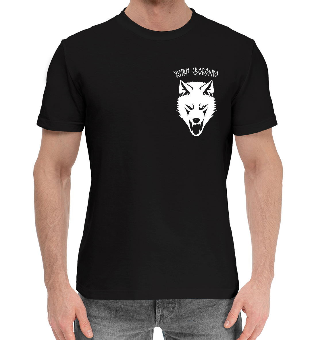 Мужская хлопковая футболка с принтом «Живи свободно (белый волк)»