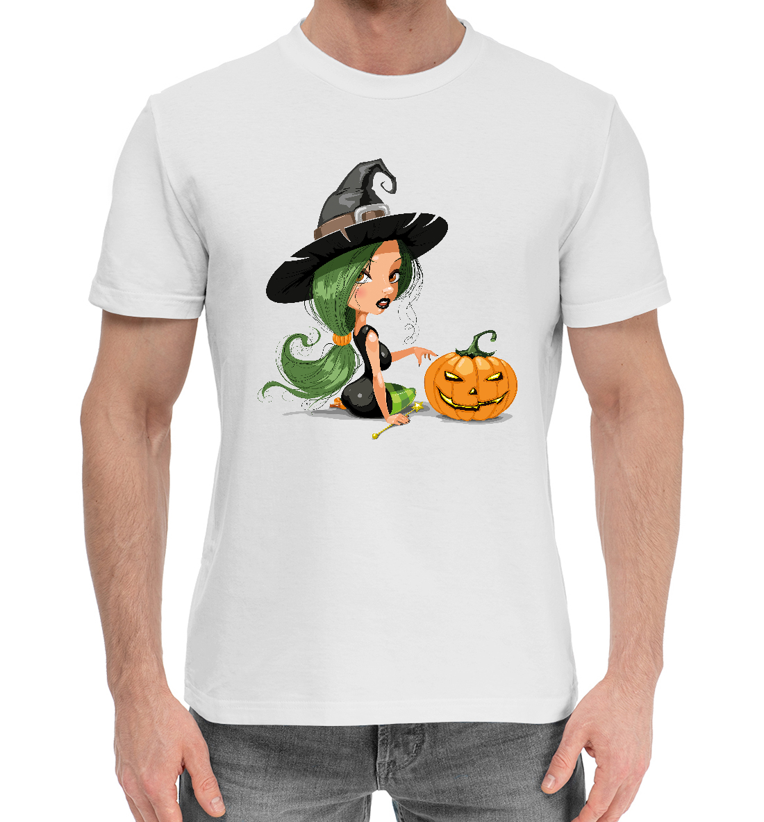 Мужская хлопковая футболка с принтом «Girl with pumpkin»