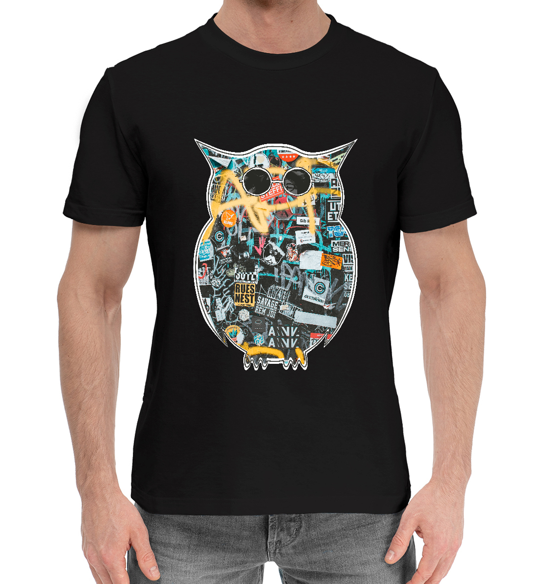 Мужская хлопковая футболка с принтом «Граффити сова»