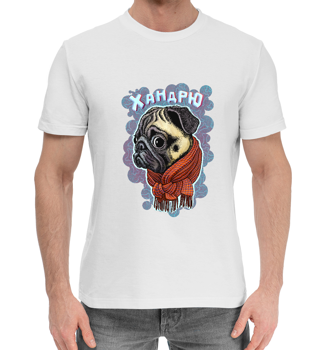 Мужская хлопковая футболка с принтом «Грустный мопс в шарфике»