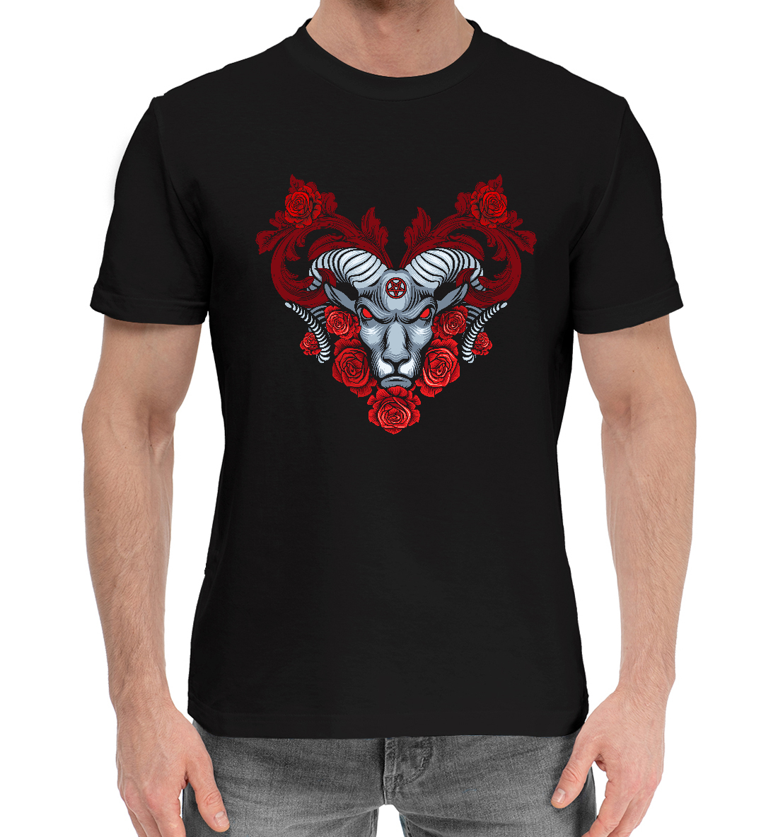 Мужская хлопковая футболка с принтом «Эзотерический баран с розами»