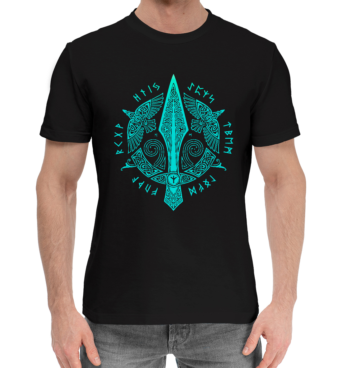 Мужская хлопковая футболка с принтом «Копье Одина»