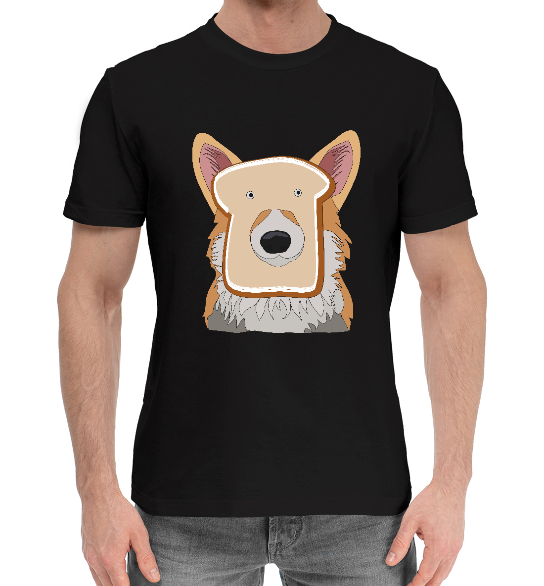Мужская хлопковая футболка с принтом «Корги с тостом»