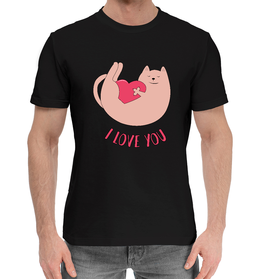 Мужская хлопковая футболка с принтом «Кот играет с сердцем»