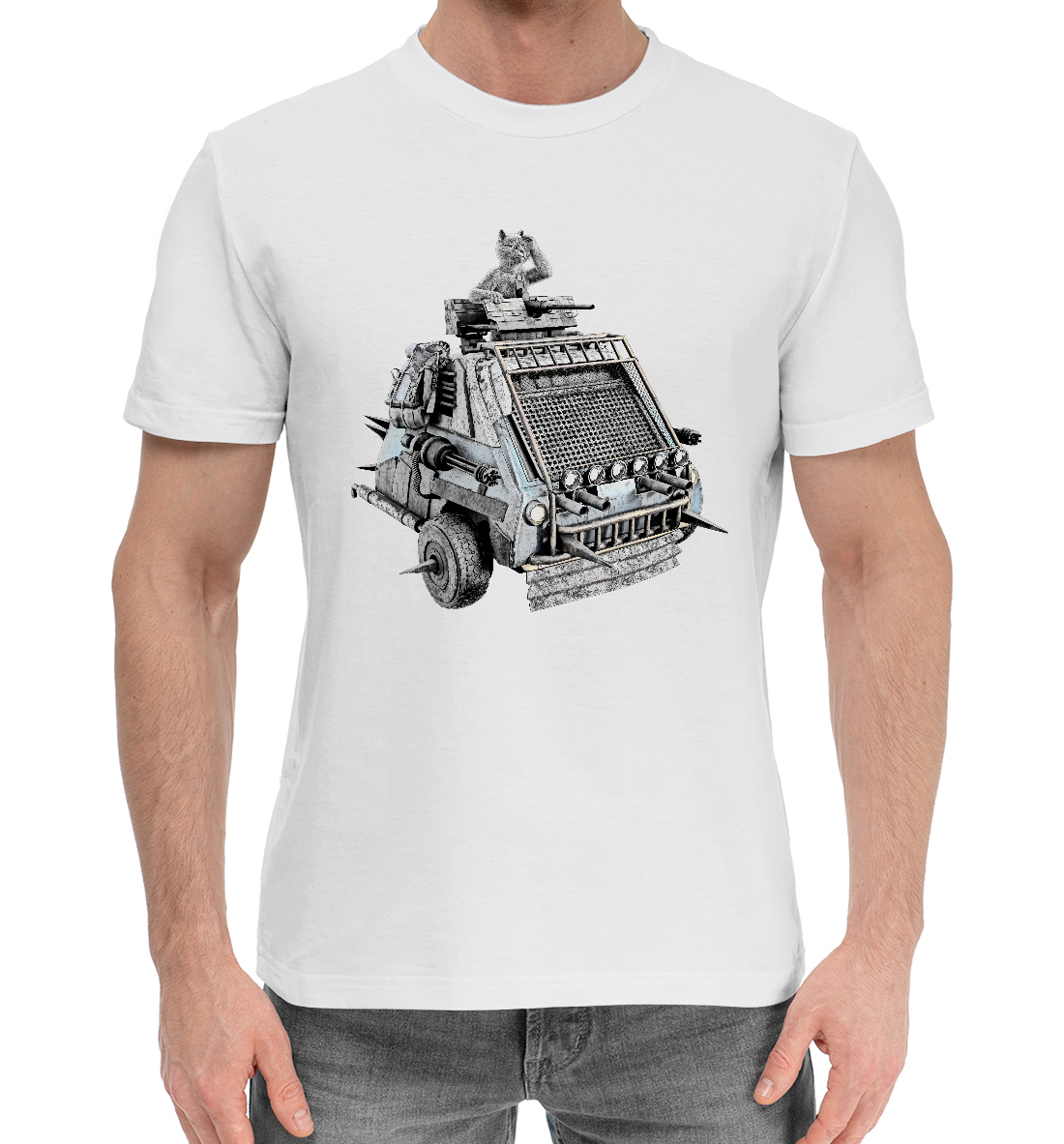 Мужская хлопковая футболка с принтом «Кот на танке»