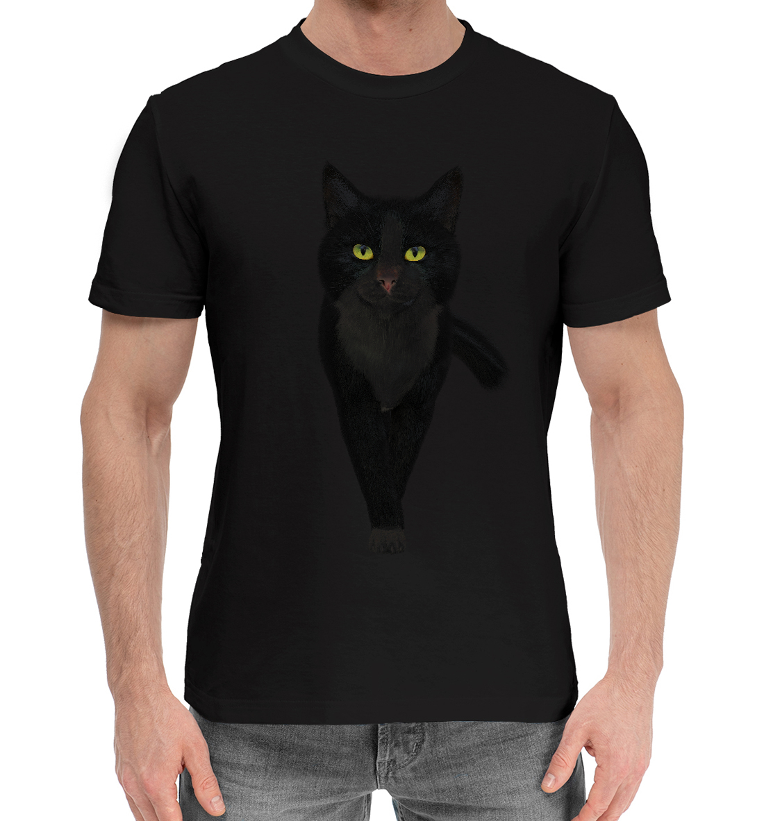 Мужская хлопковая футболка с принтом «Кот пришёл»