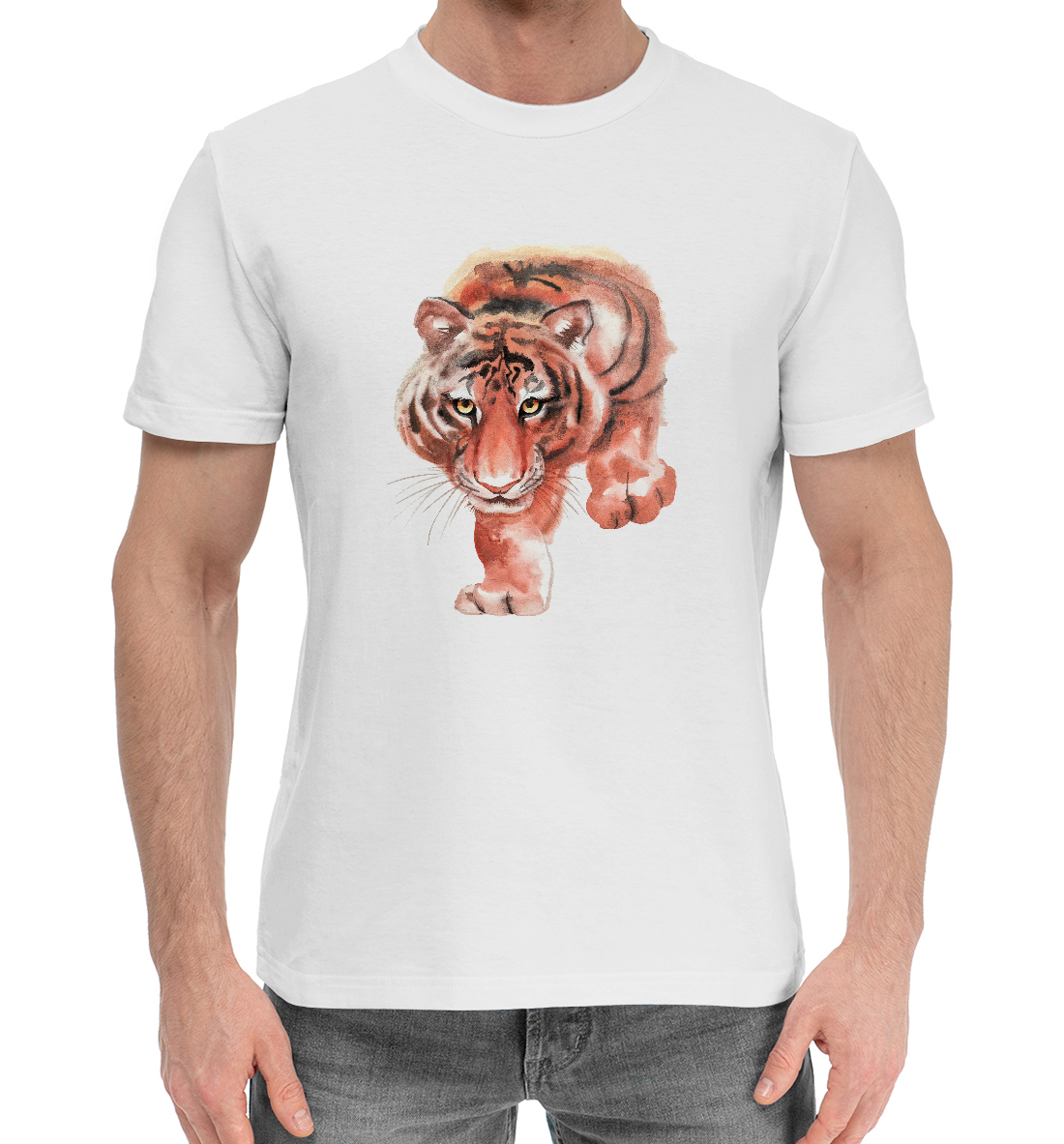 Мужская хлопковая футболка с принтом «Крадущийся тигр»