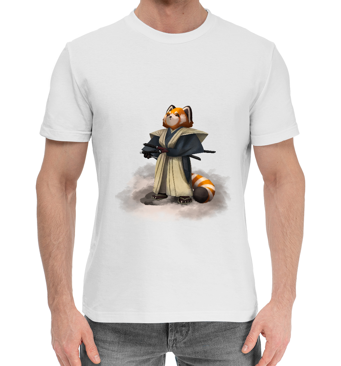 Мужская хлопковая футболка с принтом «Красная панда самурай»