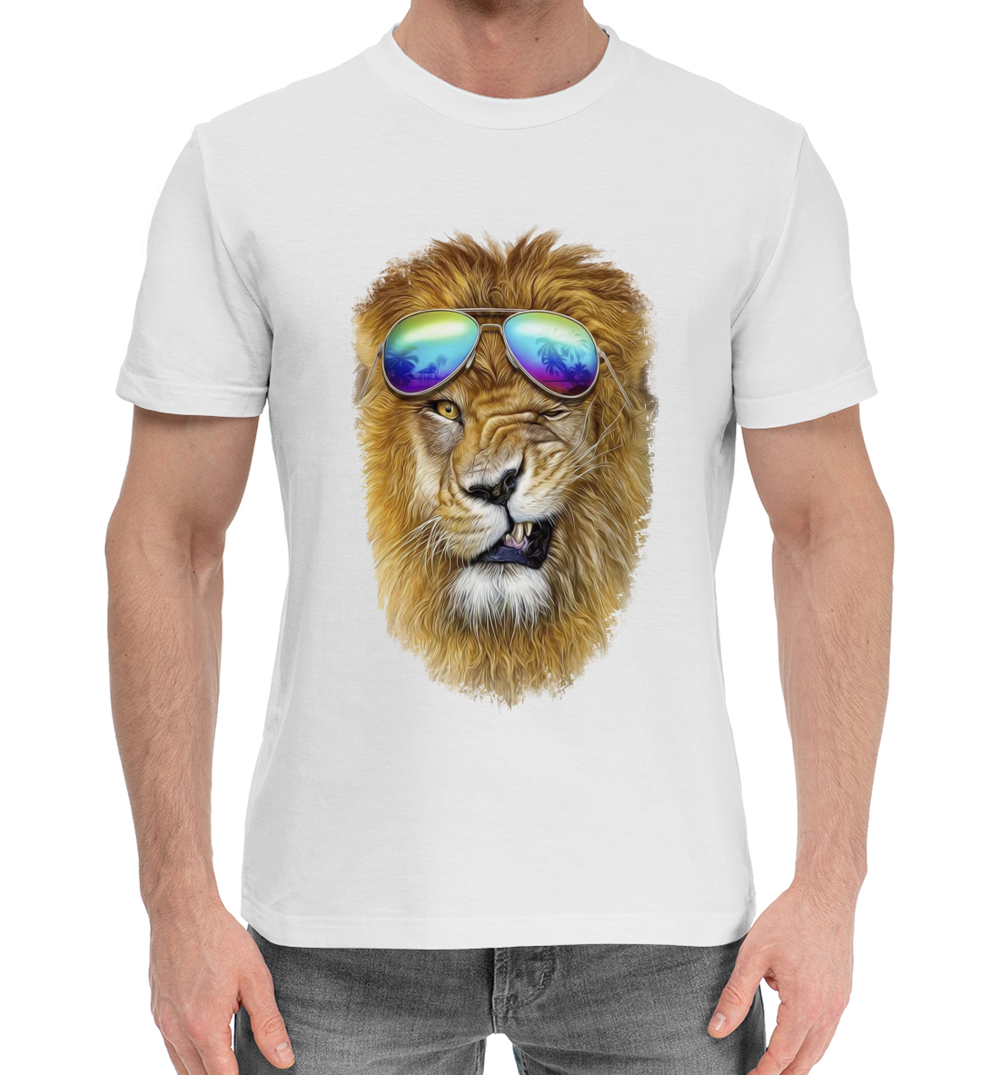 Мужская хлопковая футболка с принтом «Лев в очках»