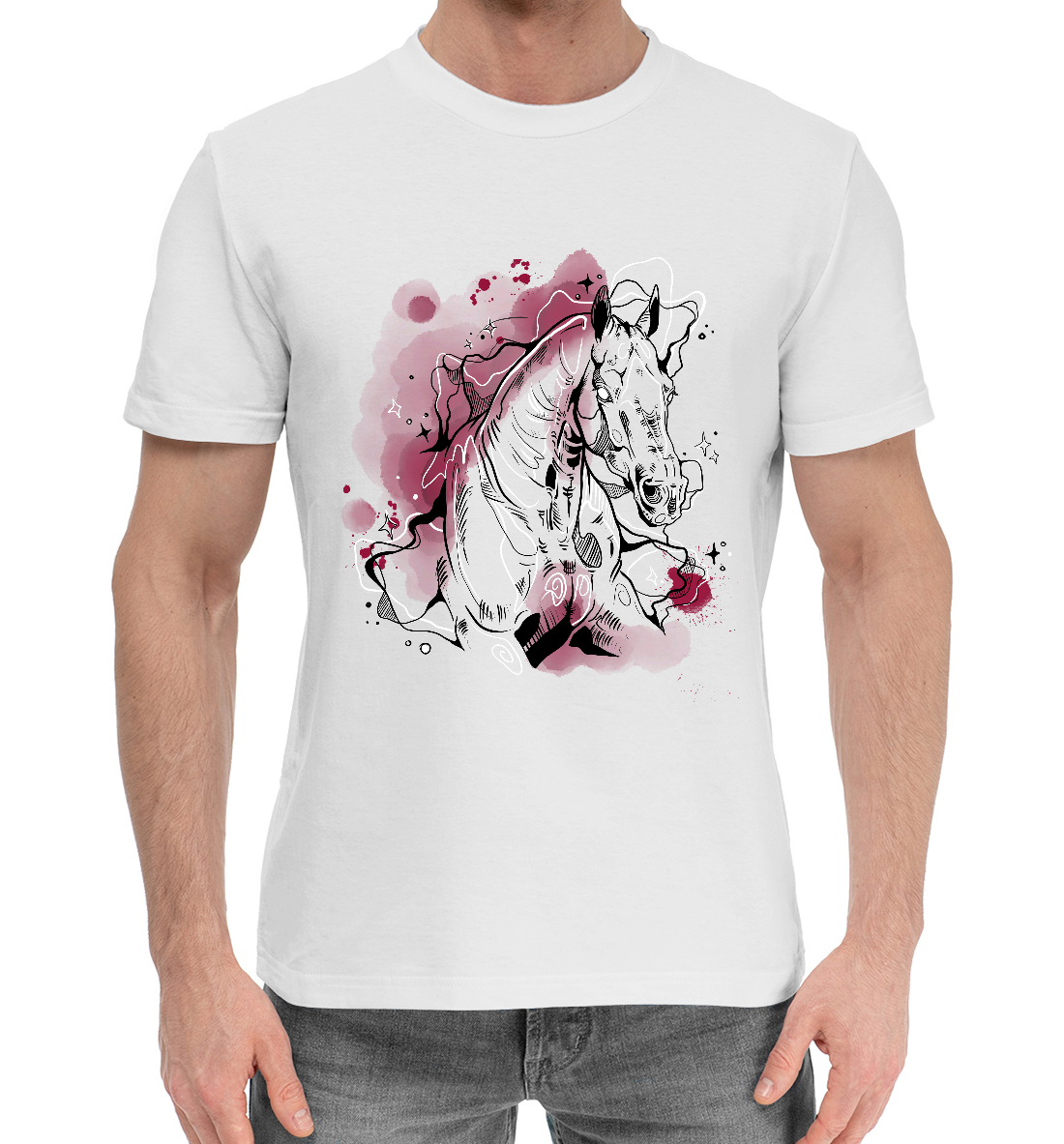 Мужская хлопковая футболка с принтом «Лошадь с розовыми кляксами»