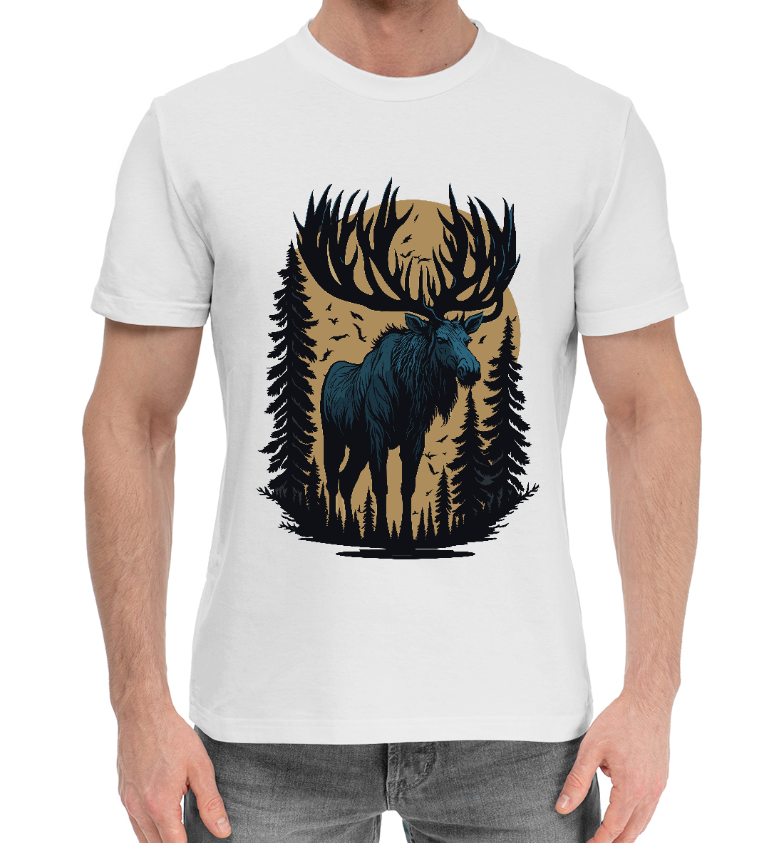 Мужская хлопковая футболка с принтом «Лось в тайге»