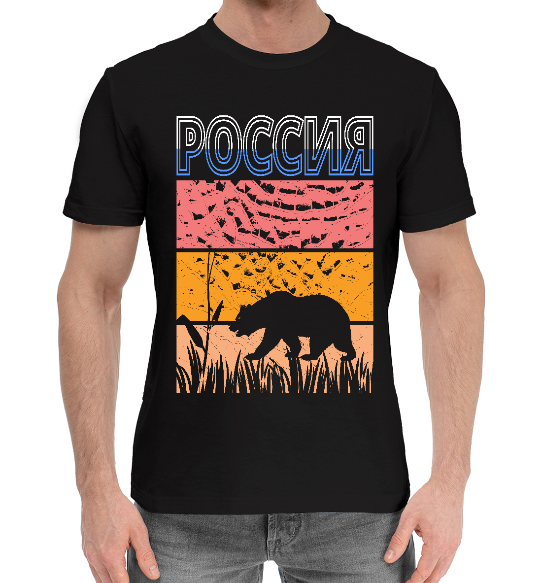 Мужская хлопковая футболка с принтом «Медведь Россия»