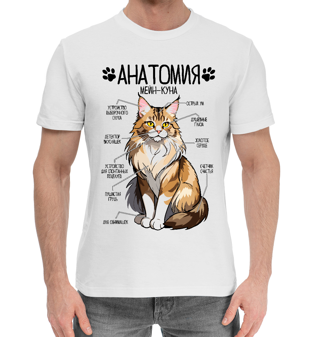 Мужская хлопковая футболка с принтом «Мейн-кун анатомия»