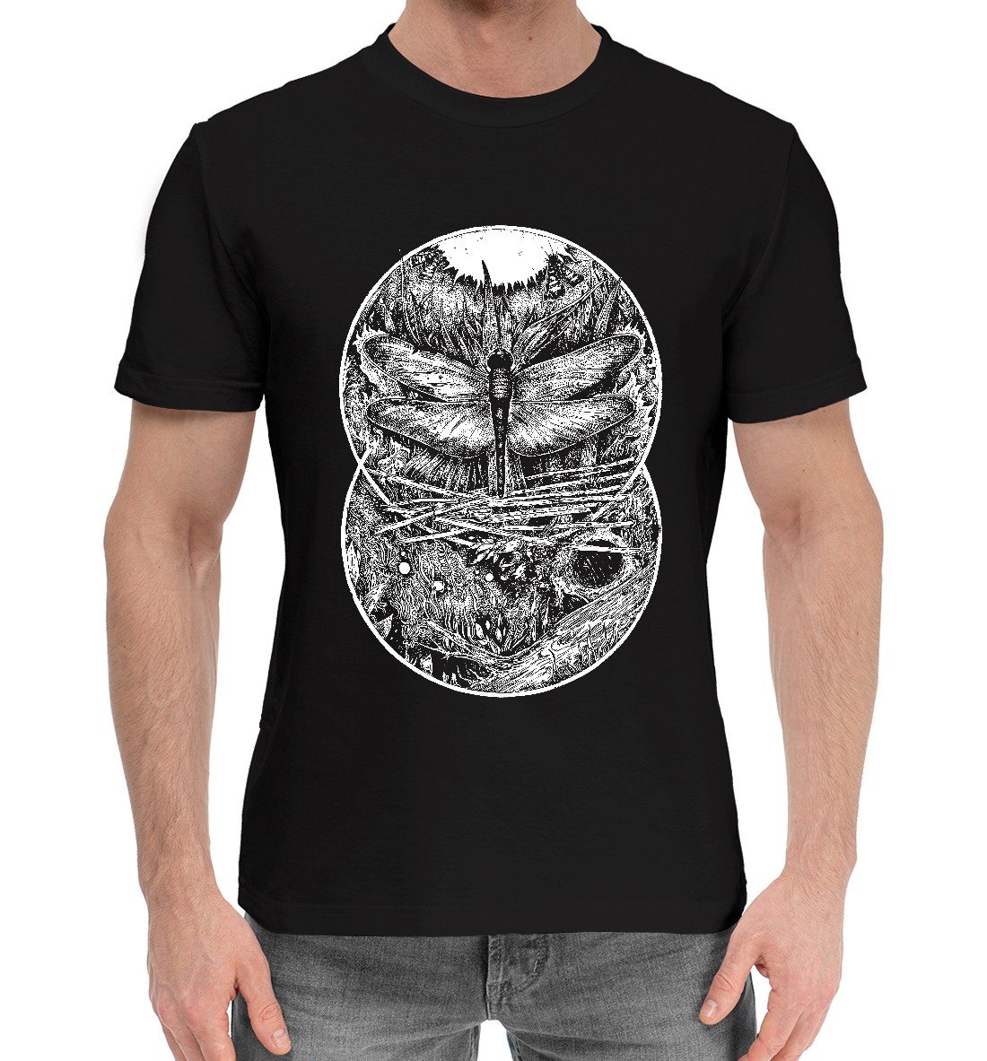 Мужская хлопковая футболка с принтом «Мистическая стрекоза»