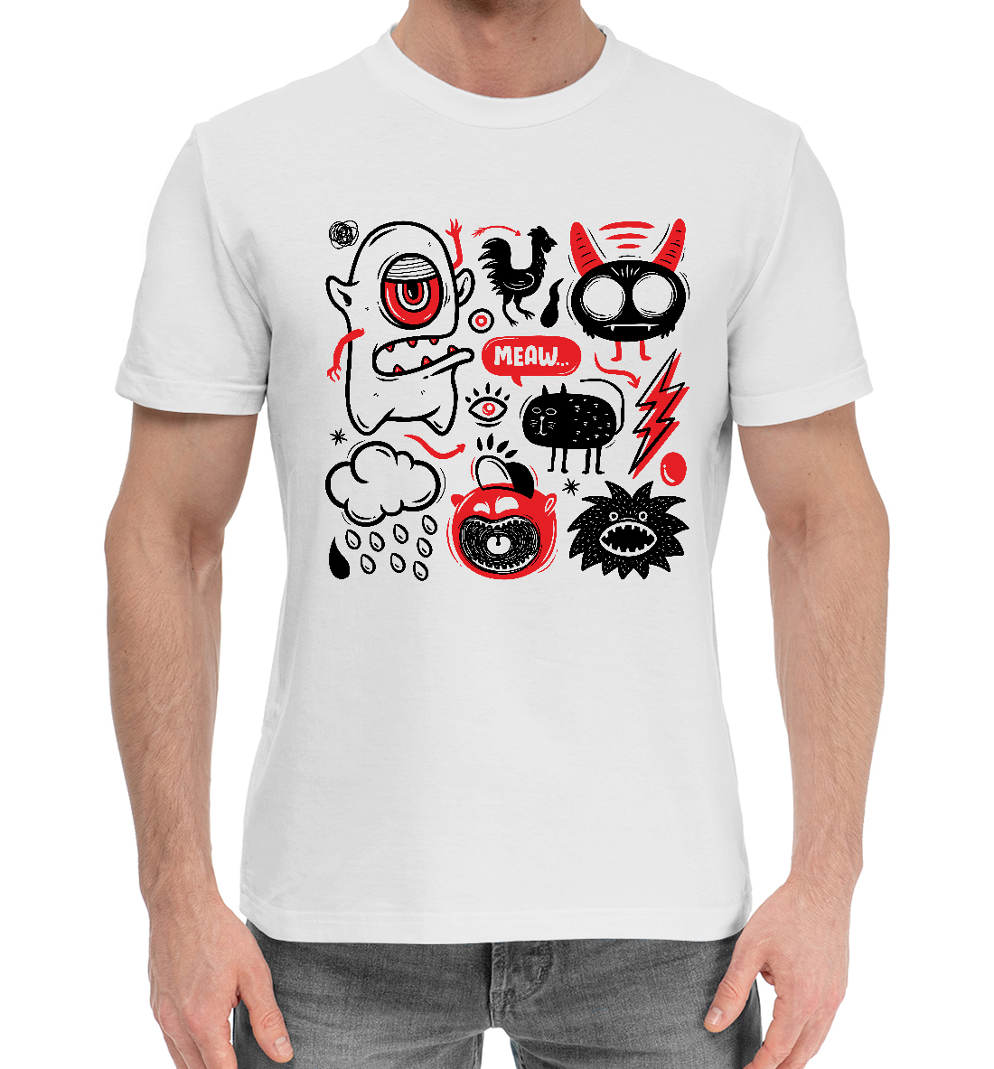 Мужская хлопковая футболка с принтом «Монстрики»