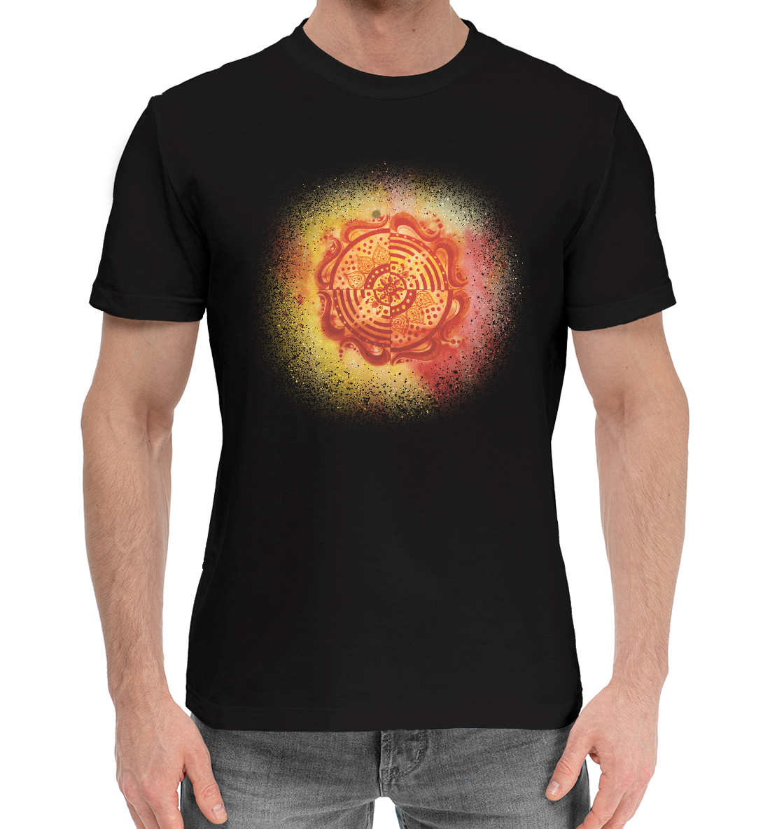 Мужская хлопковая футболка с принтом «Огненная мандала силы»