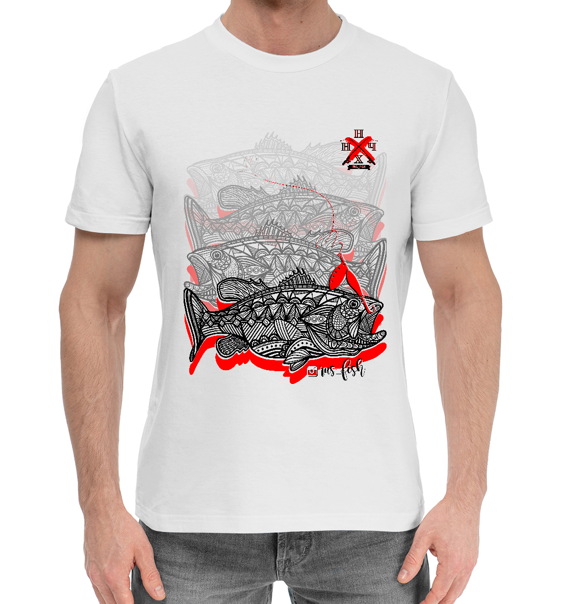 Мужская хлопковая футболка с принтом «Окуни»