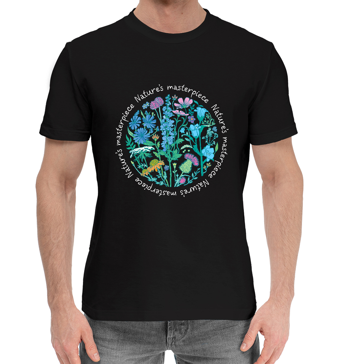 Мужская хлопковая футболка с принтом «Полевые цветы в круге»